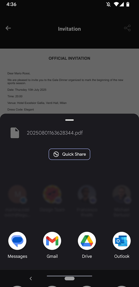 Cartella Documenti I file (es. PDF) possono essere visualizzati e condivisi tramite App esterne.