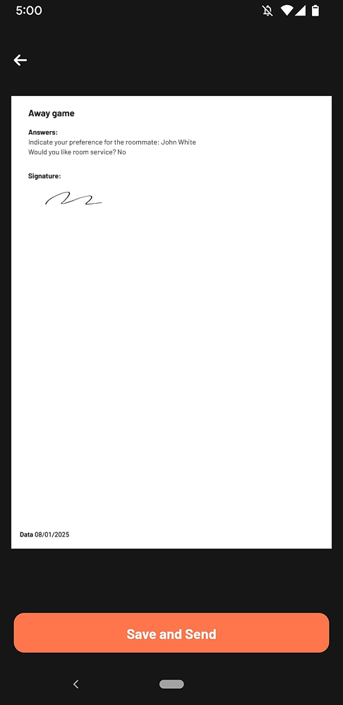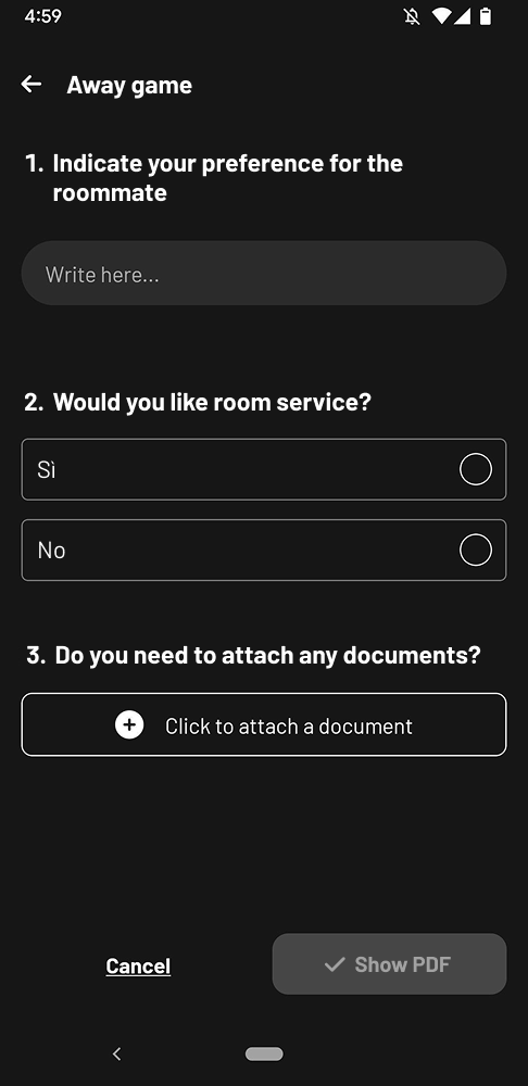 Selezionando il questionario che vogliamo compilare, ci verranno chieste tutti i quesiti previsti da quest'ultimo. Se previsto, verrà anche mostrata una anteprima del questionario appena compilato con la possibilità di firmarlo, per poi inviare il questionario