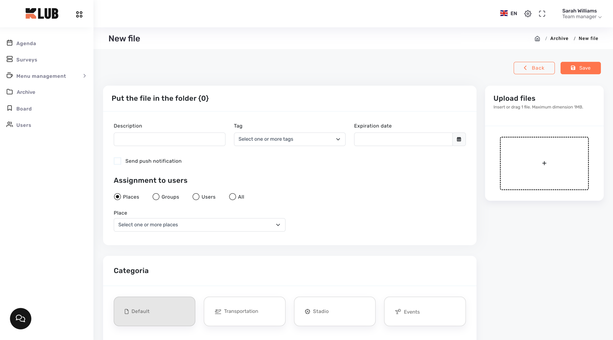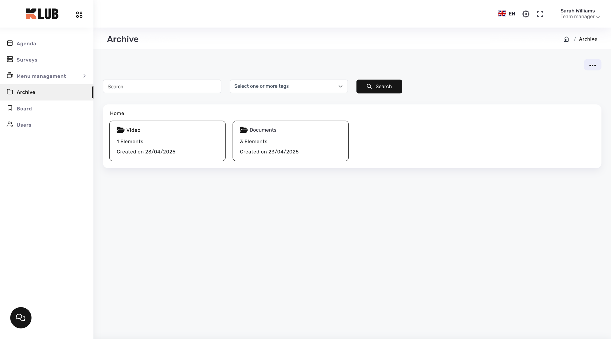 La sezione Archivio consente di caricare, organizzare e condividere file all’interno della piattaforma, monitorando anche la presa visione degli utenti destinatari. Si tratta di uno strumento fondamentale per la gestione documentale, sia informativa che formativa.