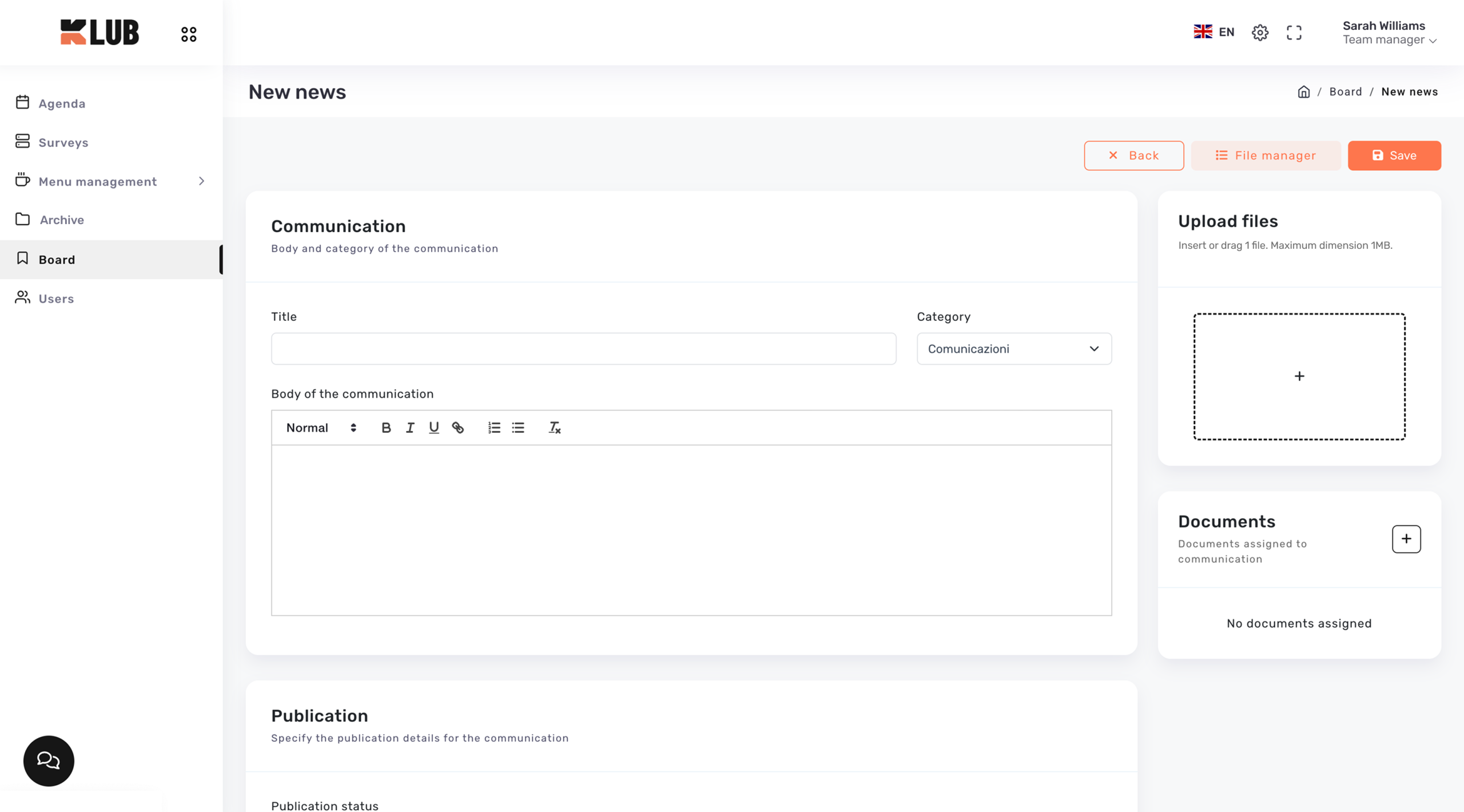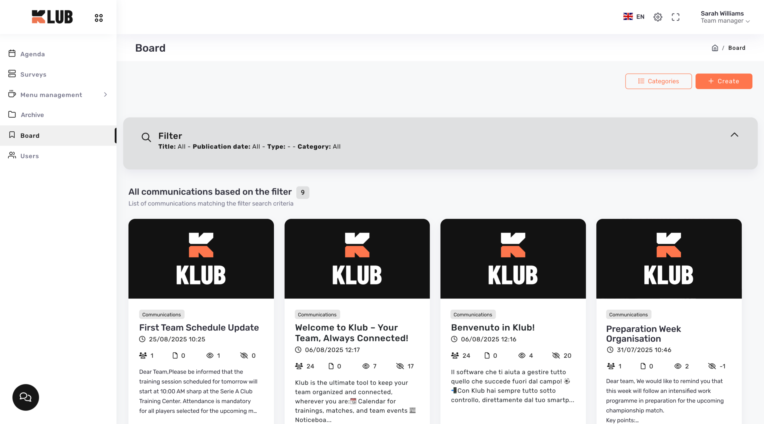 Il modulo Bacheca consente la creazione e la gestione di comunicazioni da indirizzare a utenti singoli o a gruppi specifici.