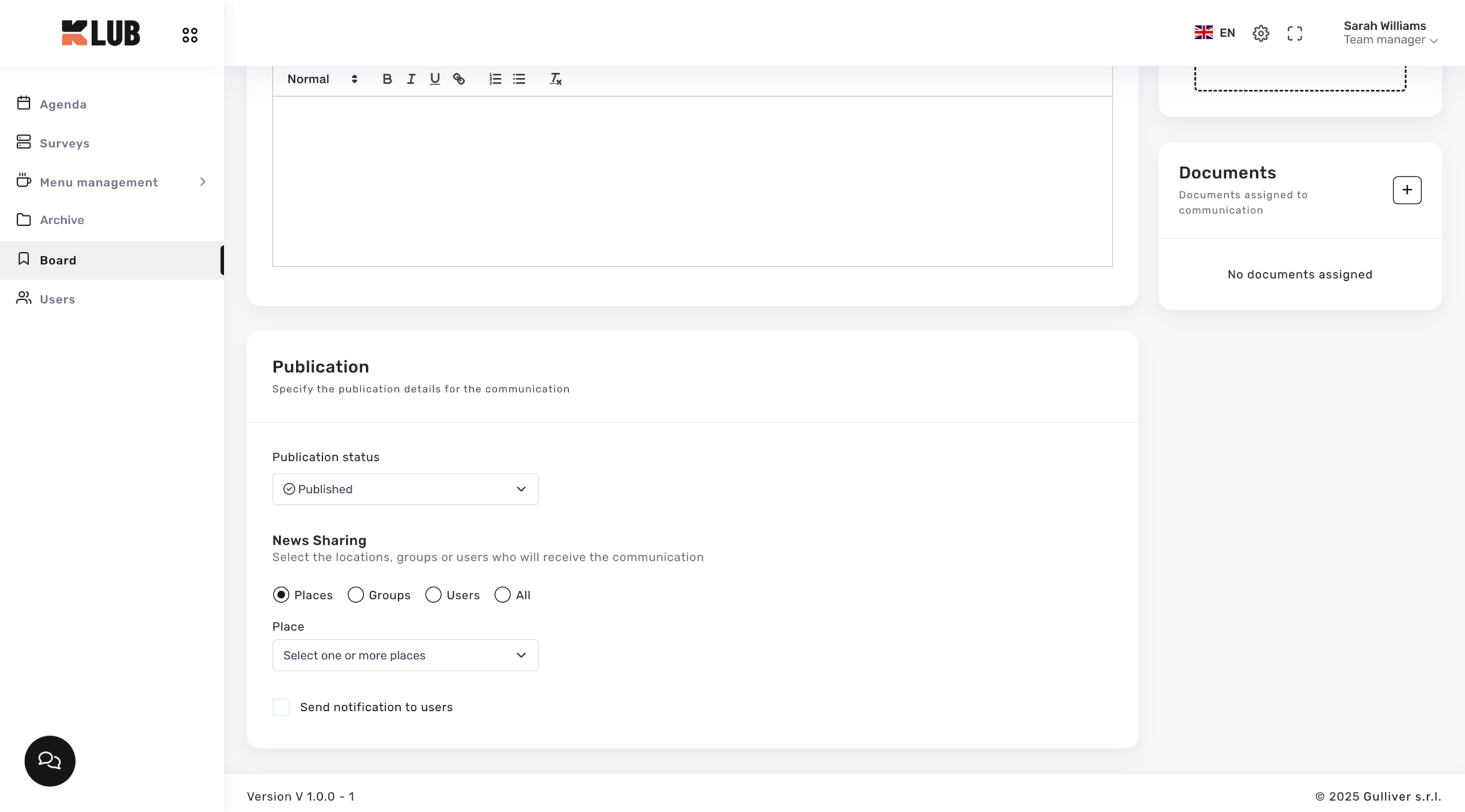 È prevista la possibilità di inviare una notifica agli utenti destinatari, per garantire una comunicazione tempestiva ed efficace.